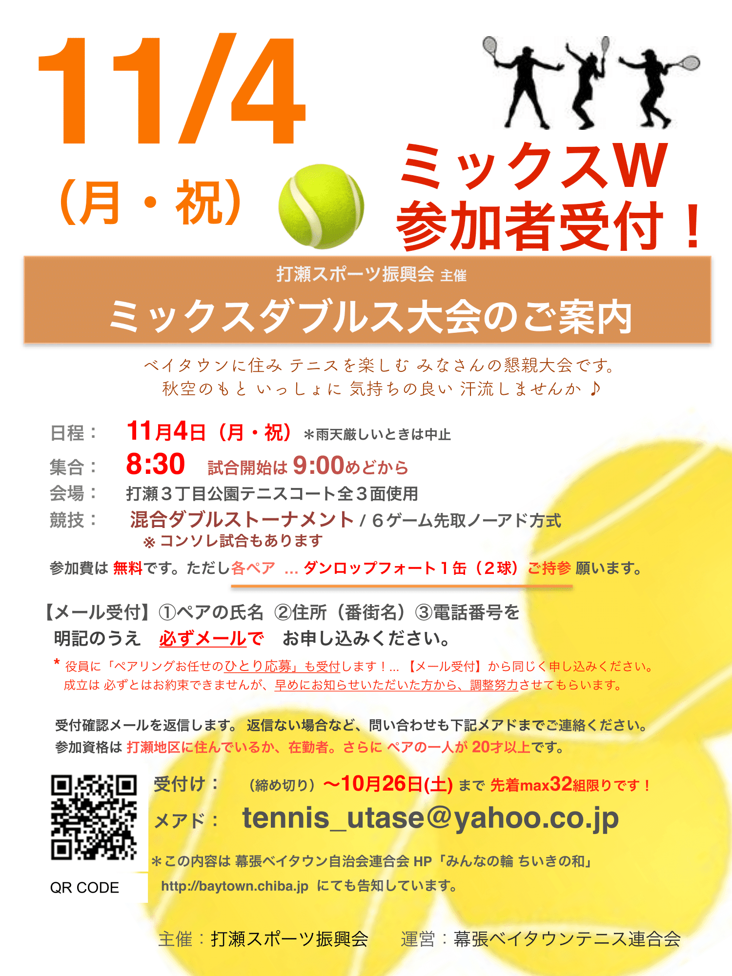 スポーツ振興会主催 秋のミックスダブルス大会のお知らせ