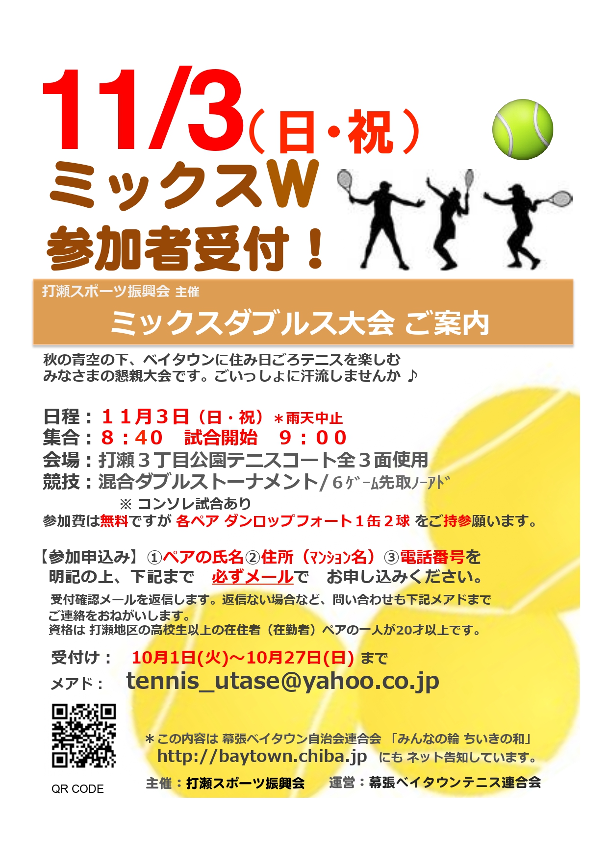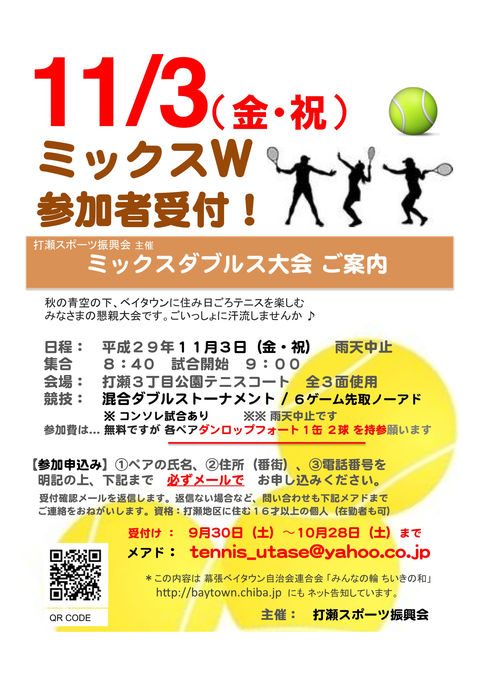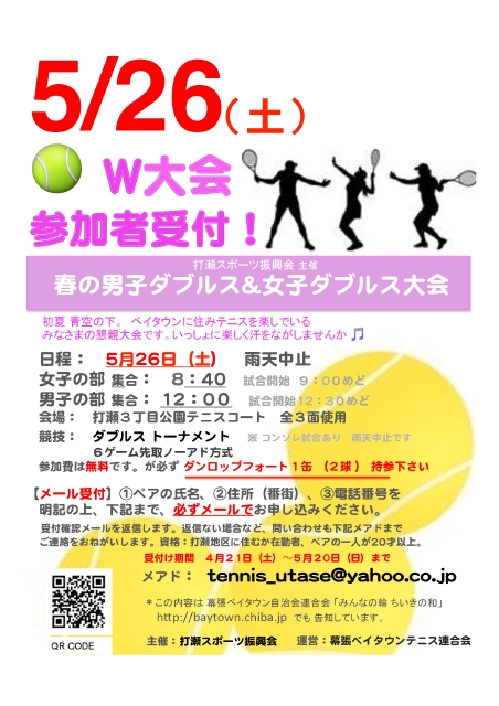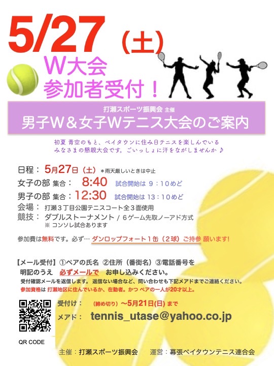 申込みはtennis_utase@yahoo.co.jpまで。
