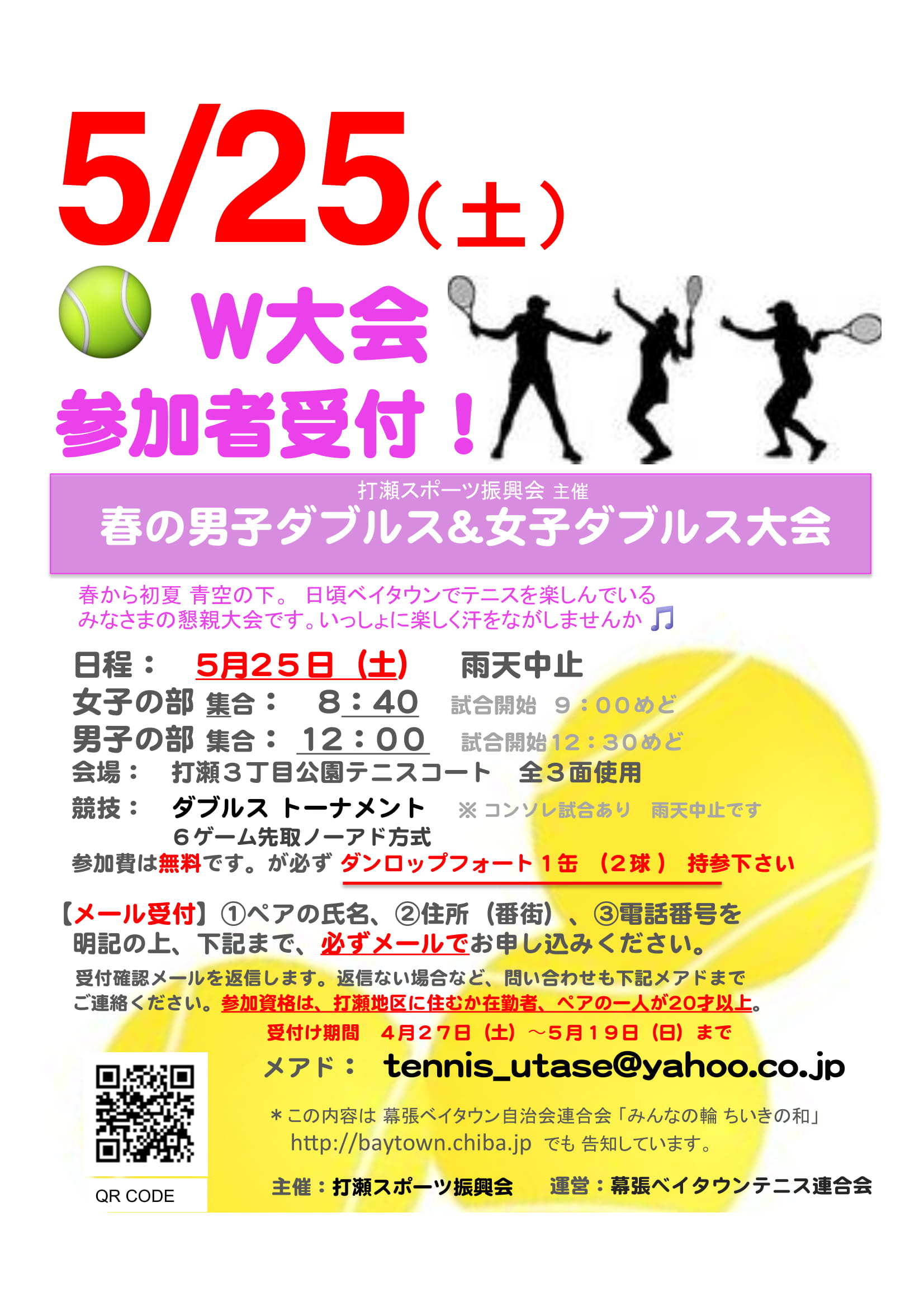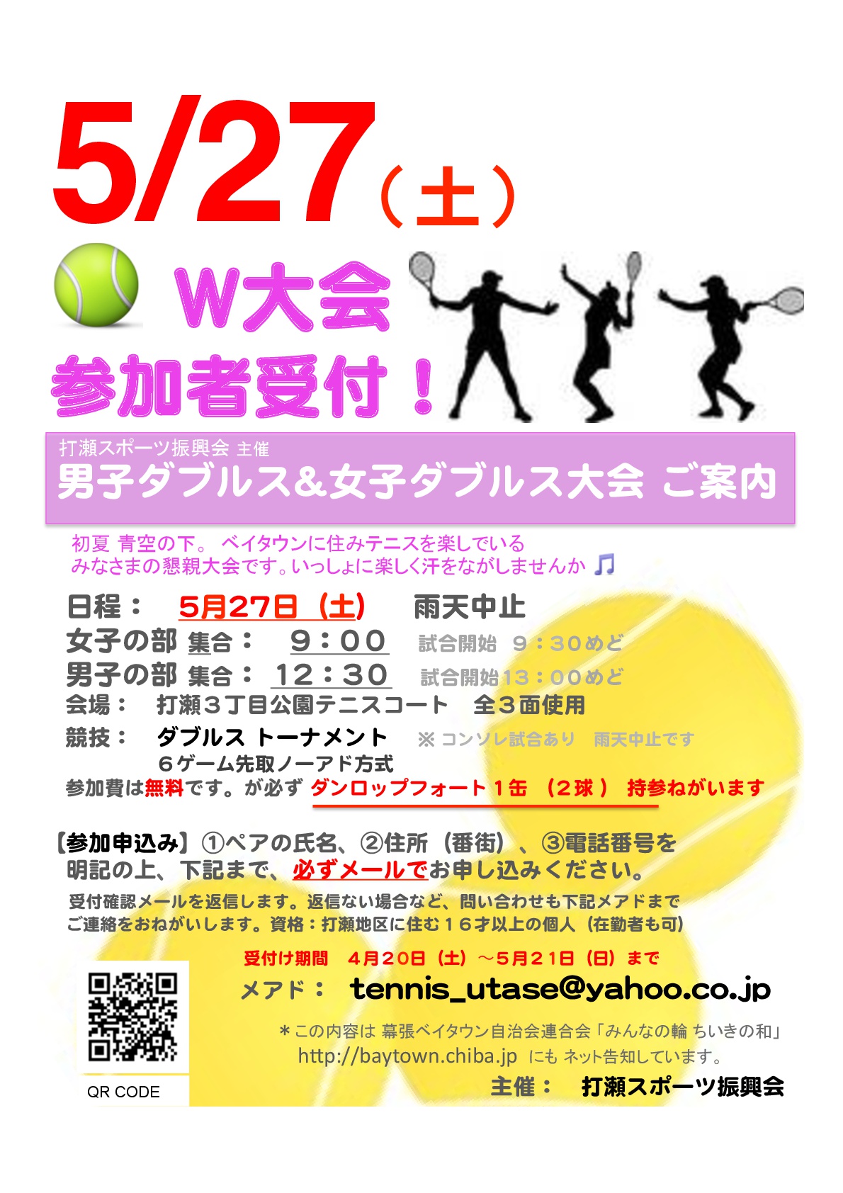 打瀬スポーツ振興会主催 春の「男子ダブルス&女子ダブルス大会」のご案内 案内PDF