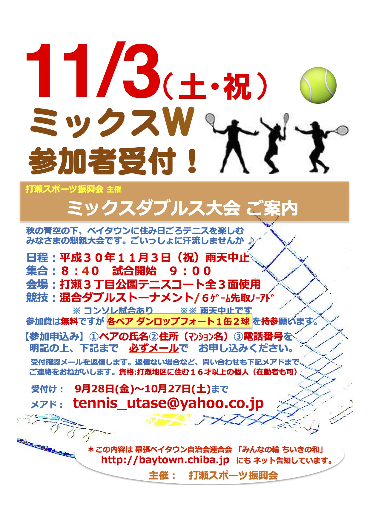 申込みはtennis_utase@yahoo.co.jpまで。